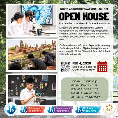 Roong Aroon International School is moving into a new era of education taking holistic and experiential learning to the next level. There will be a strong focus on Project-Based and Inquiry-Based Learning which will help students develop a superb sense of reasoning and critical thinking skills.